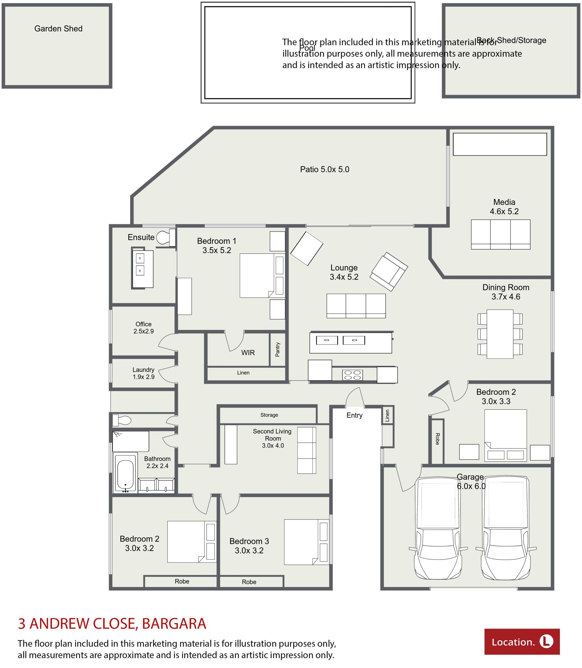 The floor plan included in this marketing material is for illustration purposes only, all measurement are approximate and is intended as an artistic impression only. Any fixtures shown may not necessarily be included in the sale contract and it is essential that any queries are directed to the agent.